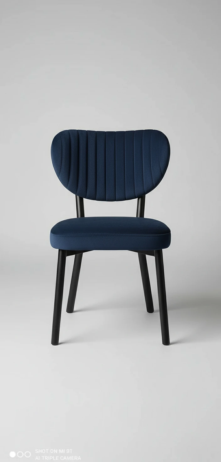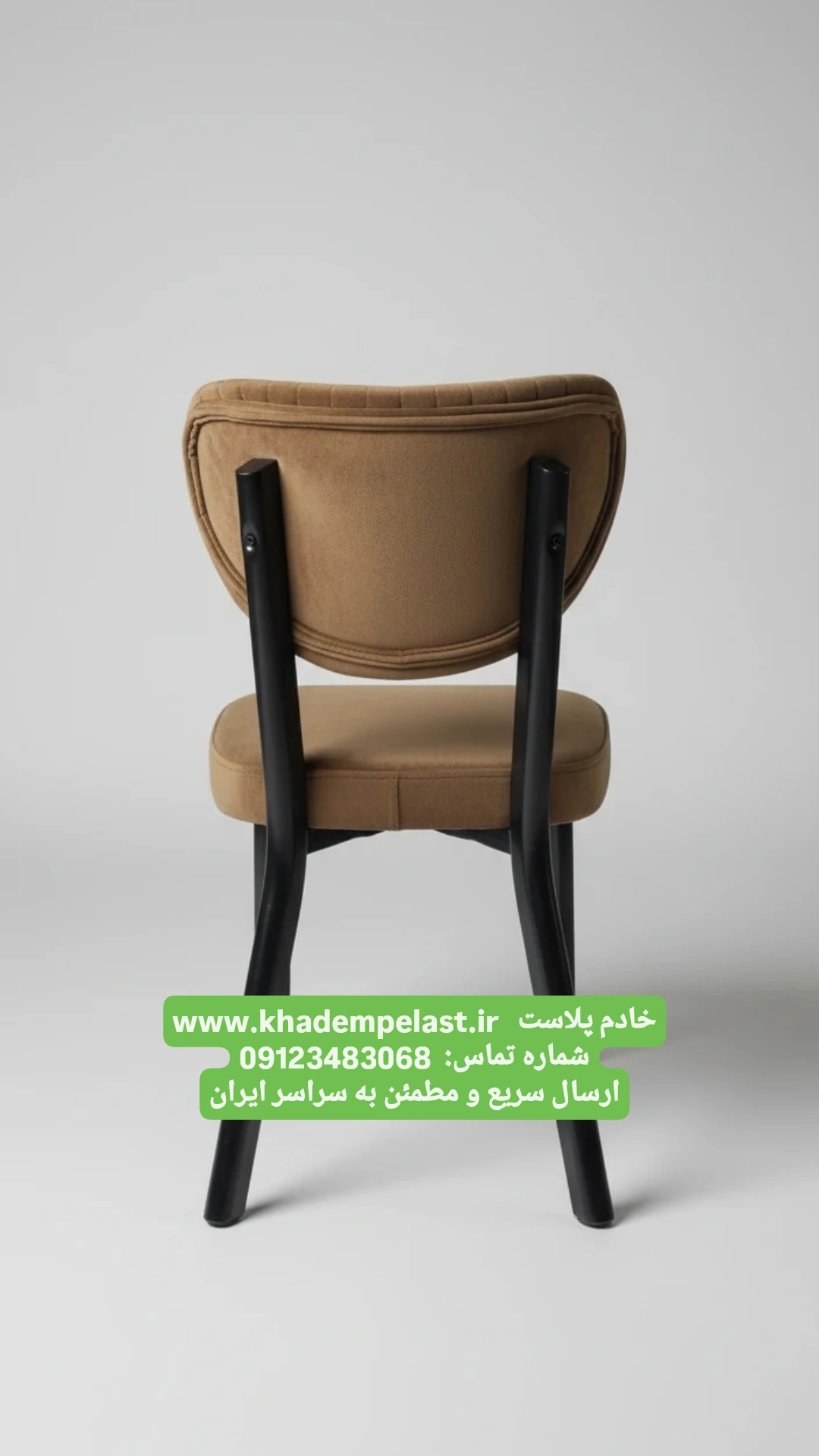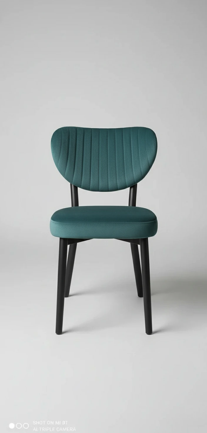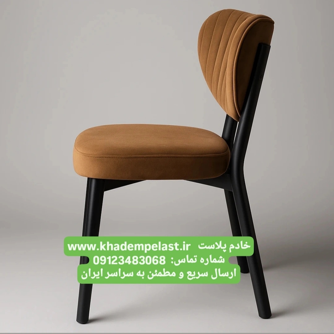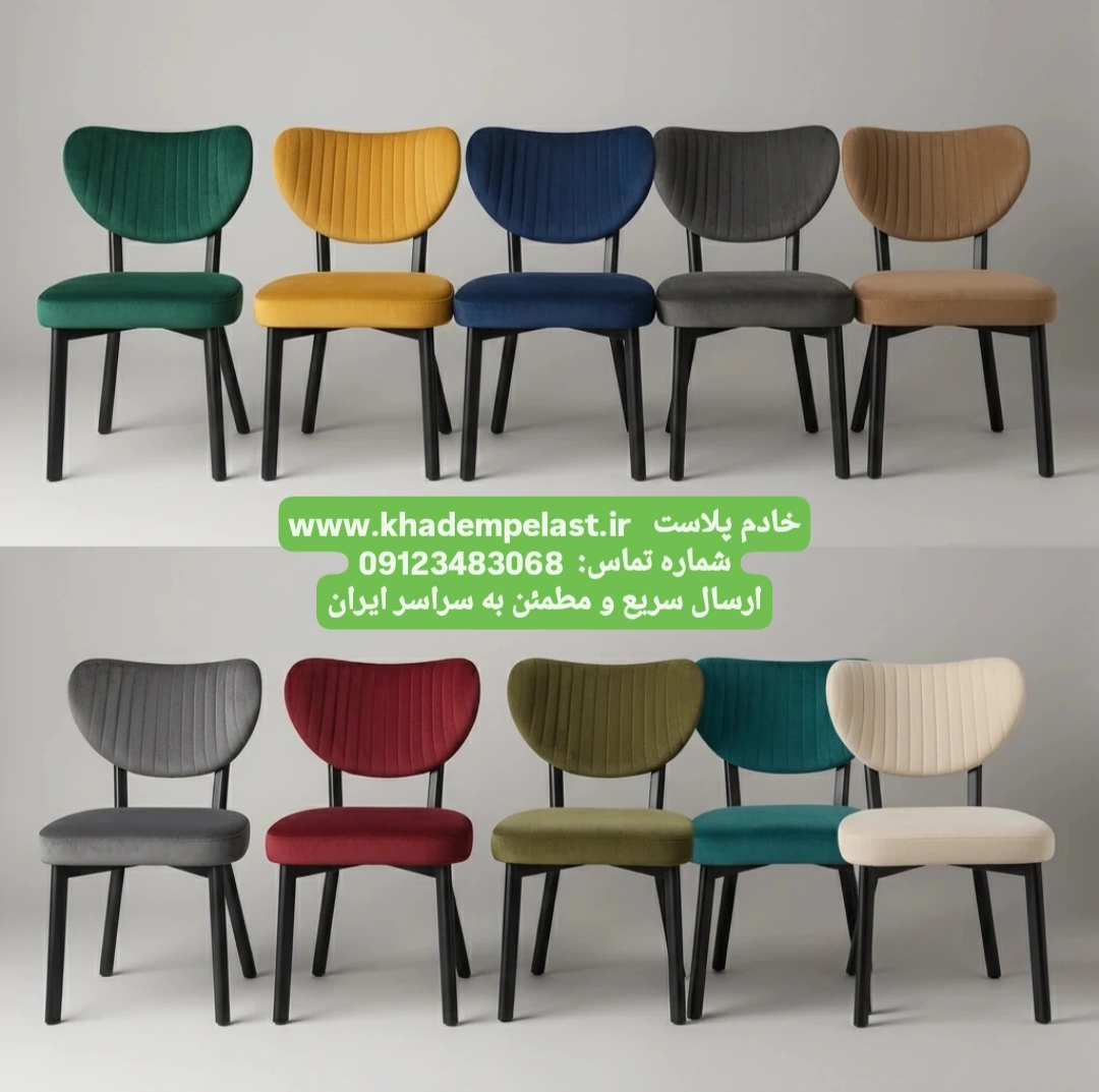 صندلی مخملی لوکس با دوخت عمودی و پایه فلزی مشکی، در دهها رنگ متنوع. مناسب فضای داخلی مدرن، آشپزخانه، کافیشاپ و سالن پذیرایی. تولید ایرانی با کیفیت آتلیهای خادم پلاست